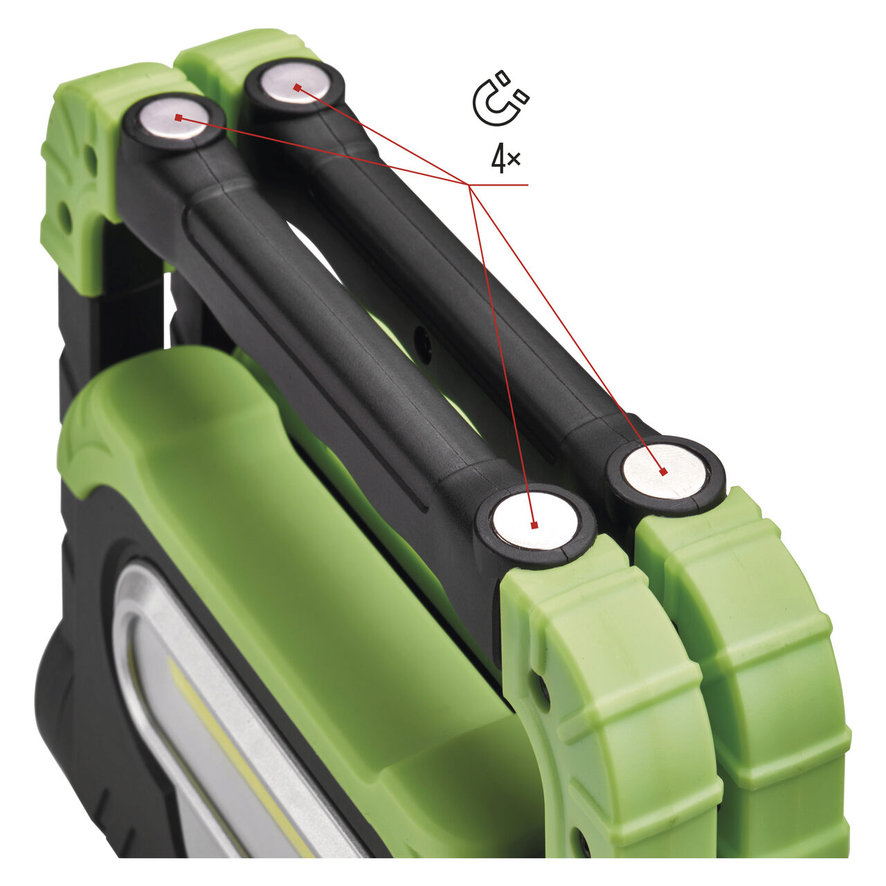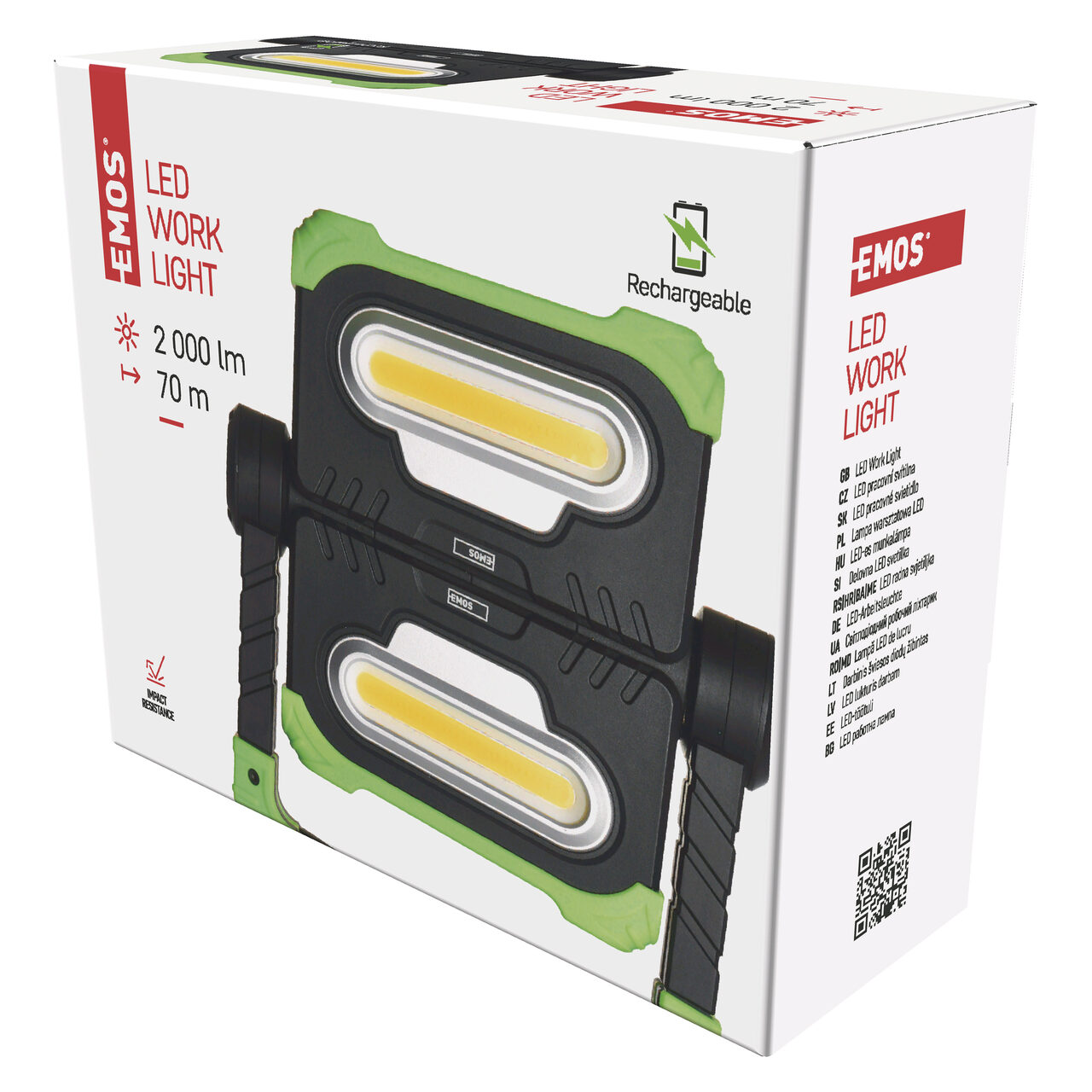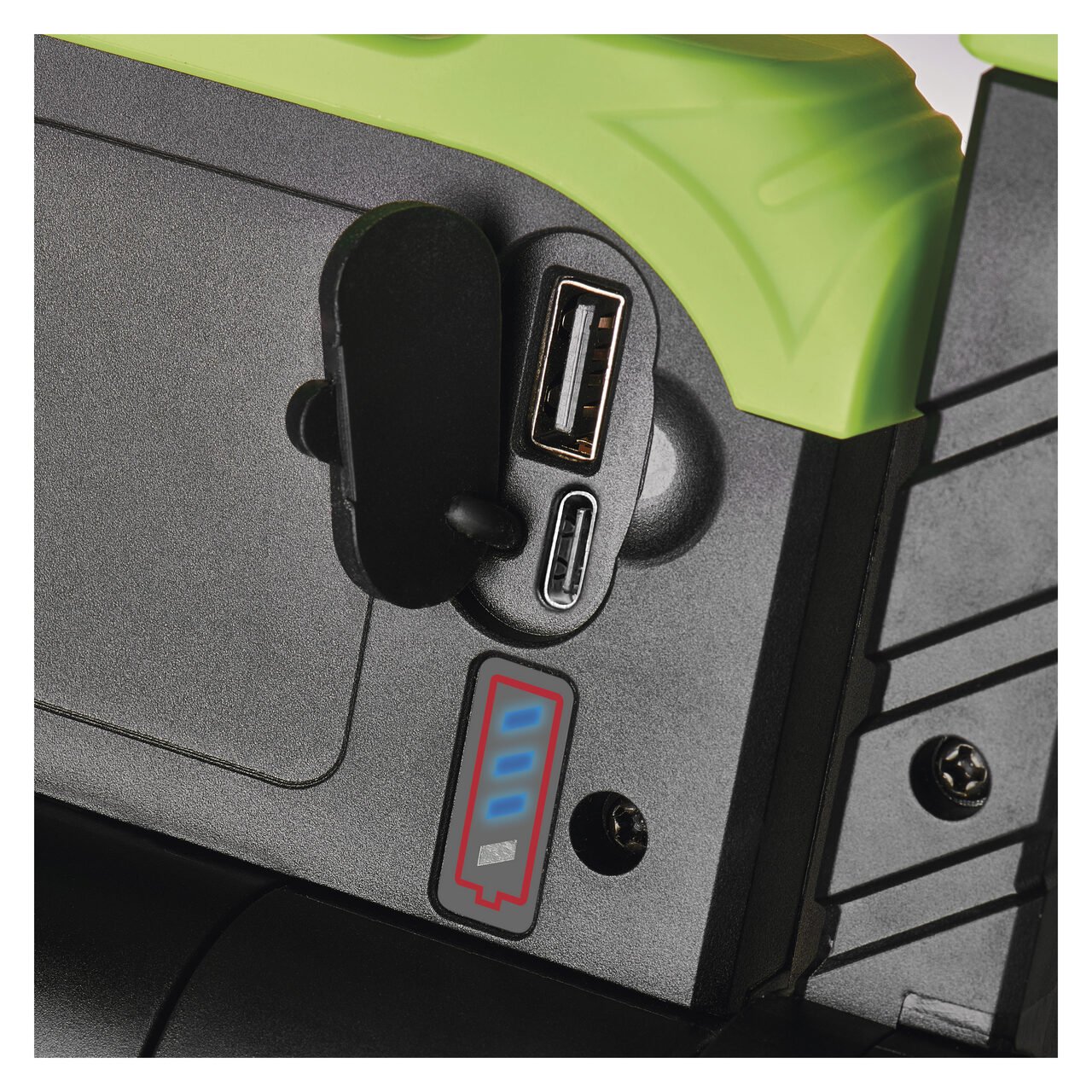 Proiector LED cu acumulator, cu trei moduri de functionare (100%, 50%, 25%). Realizat din plastic ABS si cauciuc, este usor de manevrat datorita ramei solide in care este montat, rama prevazuta cu maner cauciucat. Ideal pentru a asigura iluminatul in santiere, iluminatul spatiului de lucru atat indoor, cat si outdoor. Pe partea din spate veti gasi o mica fereastra cu balamale, sub care sunt ascunse in siguranta 2 porturi USB. Puteti incarca reflectorul cu cel mai mic (USB-B), in timp ce cel mai mare (USB-A) va permite sa scoateti din nou energia stocata - de exemplu, sa va incarcati telefonul mobil in caz de urgenta. 4 LED-uri color va informeaza continuu despre starea de incarcare si cantitatea ramasa de energie in reflector. Autonomie 3.5-14.5 ore (in functie de intensitatea de lumina: 100%, 50% sau 25%). Este echipat cu o baterie Li-Ion de 4400 mAh, 3.7V. Grad de protectie IP44 (utilizare indoor si outdoor)