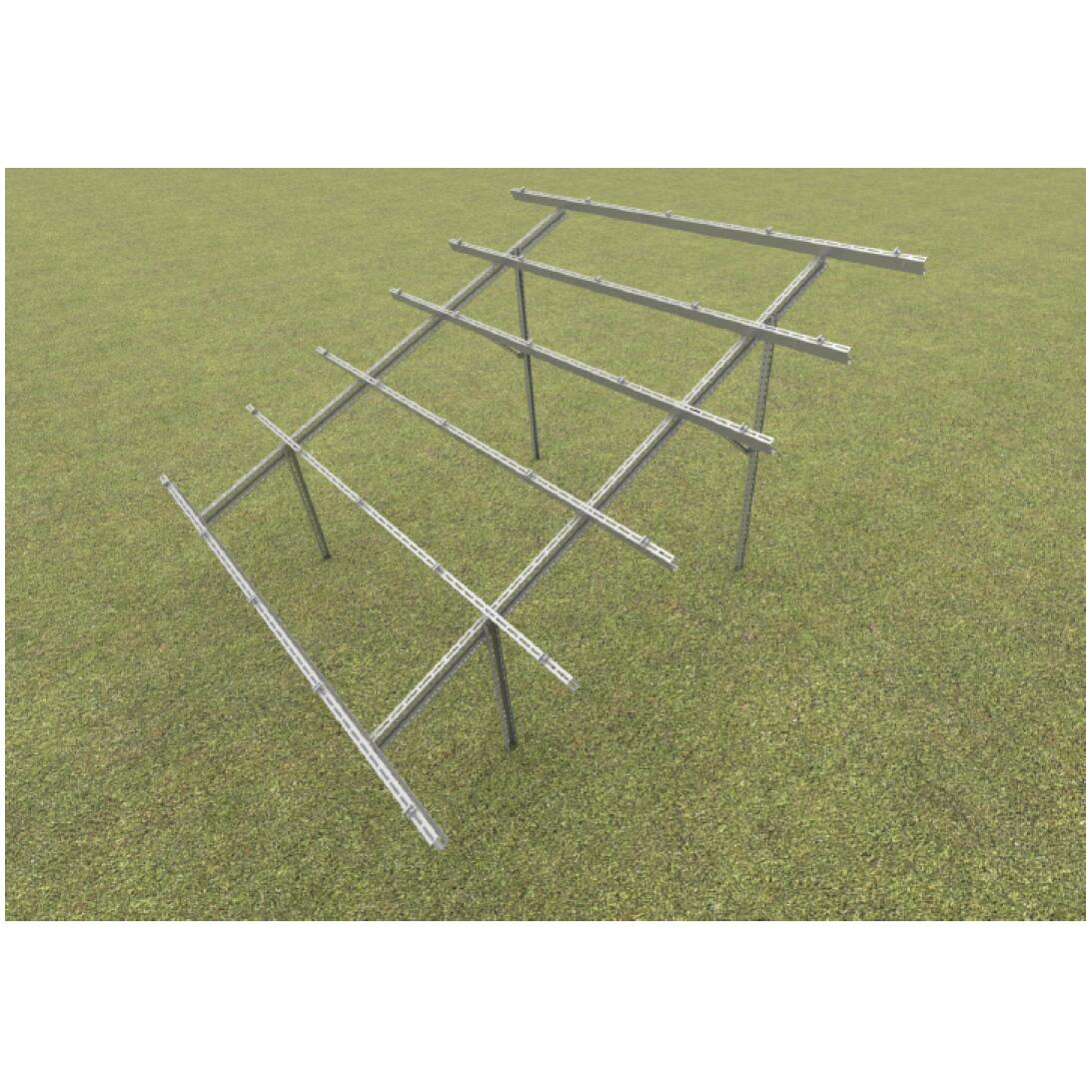 Sistem complet de suporti pentru fixarea a 3 rânduri de panouri fotovoltaice cu un aranjament vertical.