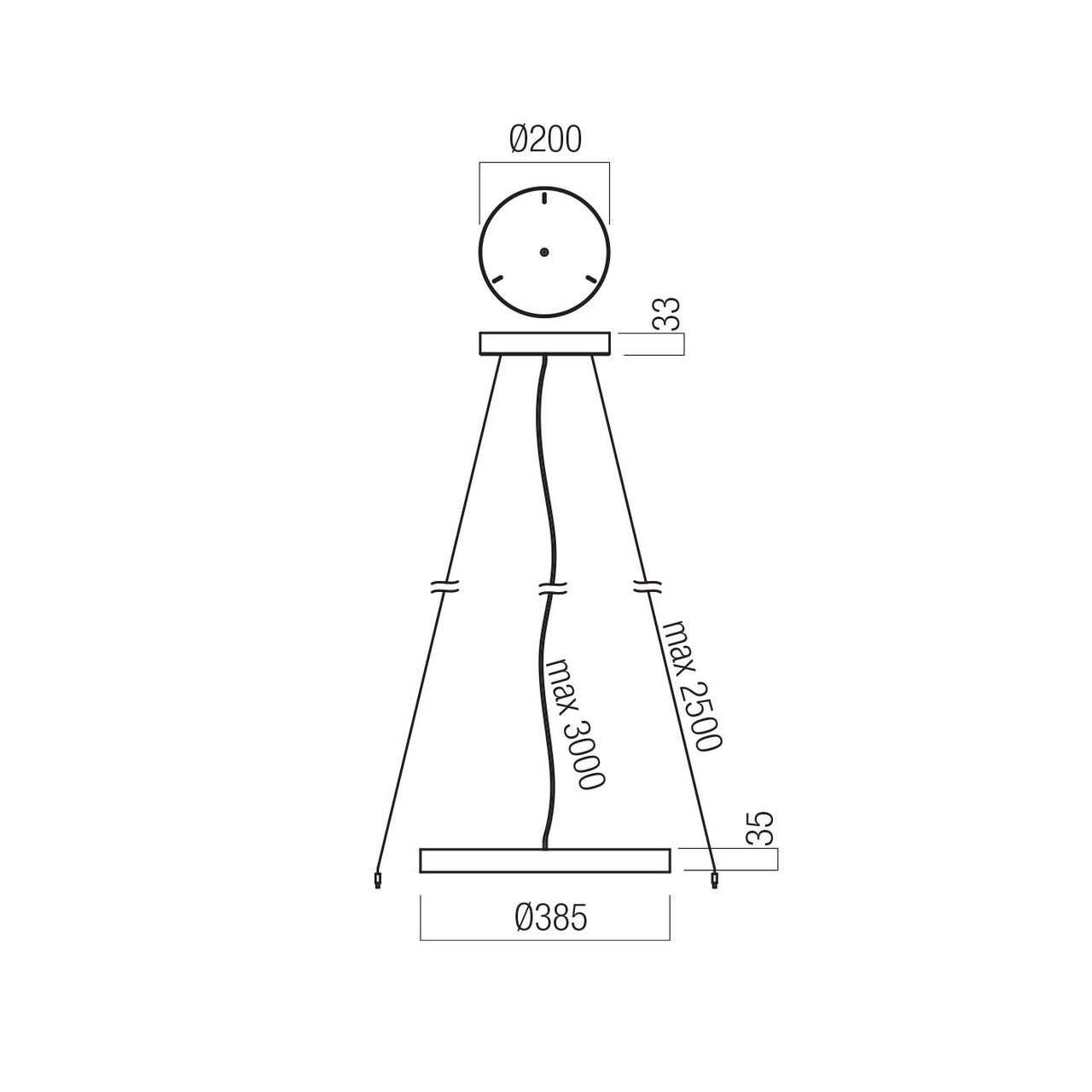 Kit-uri de suspendare disponibile separat, compuse din bază rotundă pentru alimentare și fixare pe tavan, cabluri din oțel și capac pentru mascarea conexiunilor.