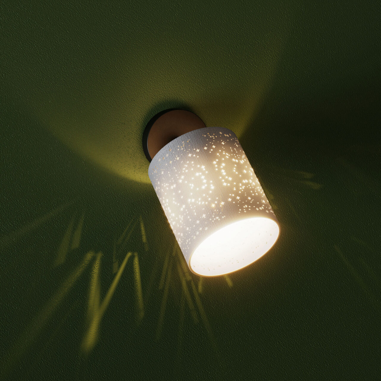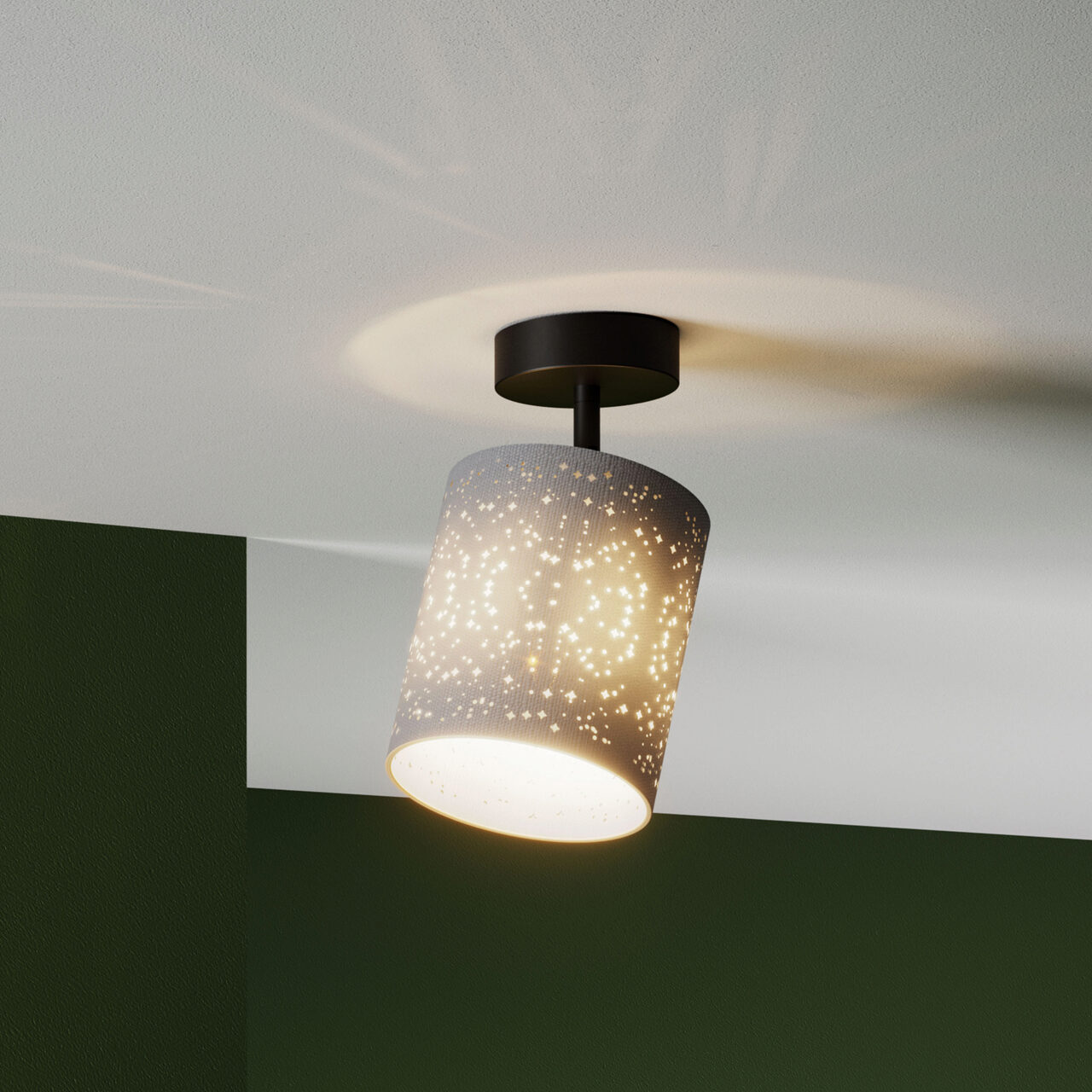 Spot pentru interior, structură din metal vopsit negru mat, abajur din țesătură culoare gri pe suport PVC alb, modelat cu laser, 04-534 Smarter.