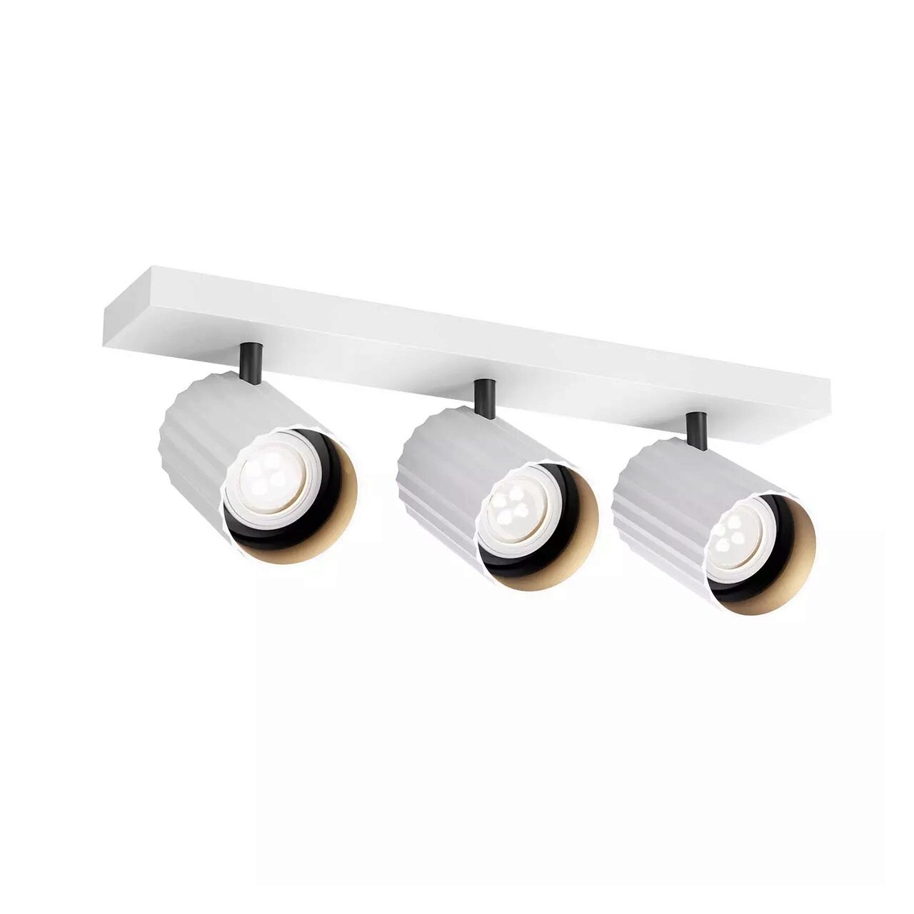 Spoturi pentru interior, structură din metal și aluminiu extrudat vopsite în câmp electrostatic alb mat la exterior cu detalii negru mat, auriu mat la exterior cu detalii negru mat sau negru mat.