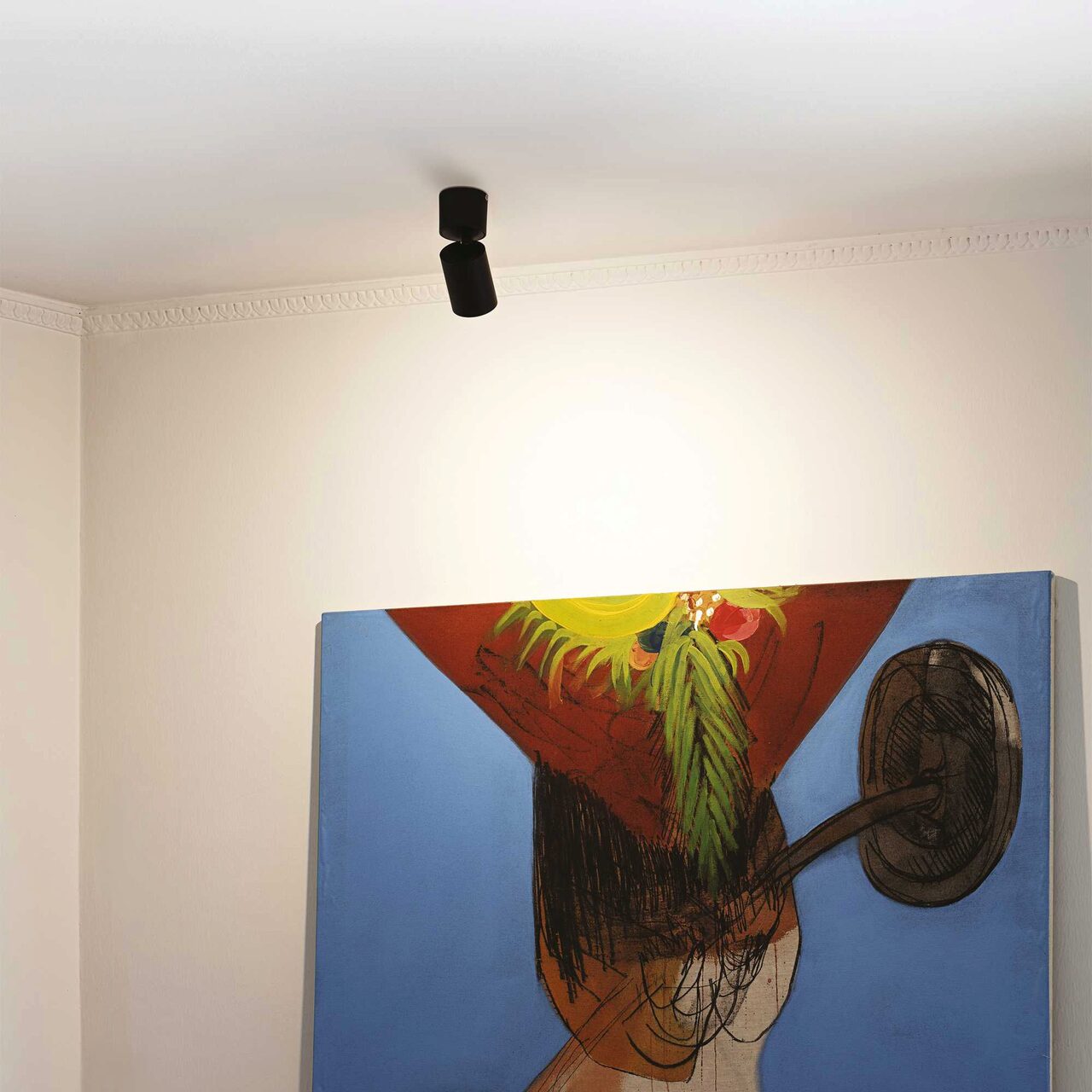 Spot modern din colectia Toby cu cadru din aluminiu turnat sub presiune acoperit cu pulbere. Difuzorul este rotativ și înclinat. Finisaj negru.