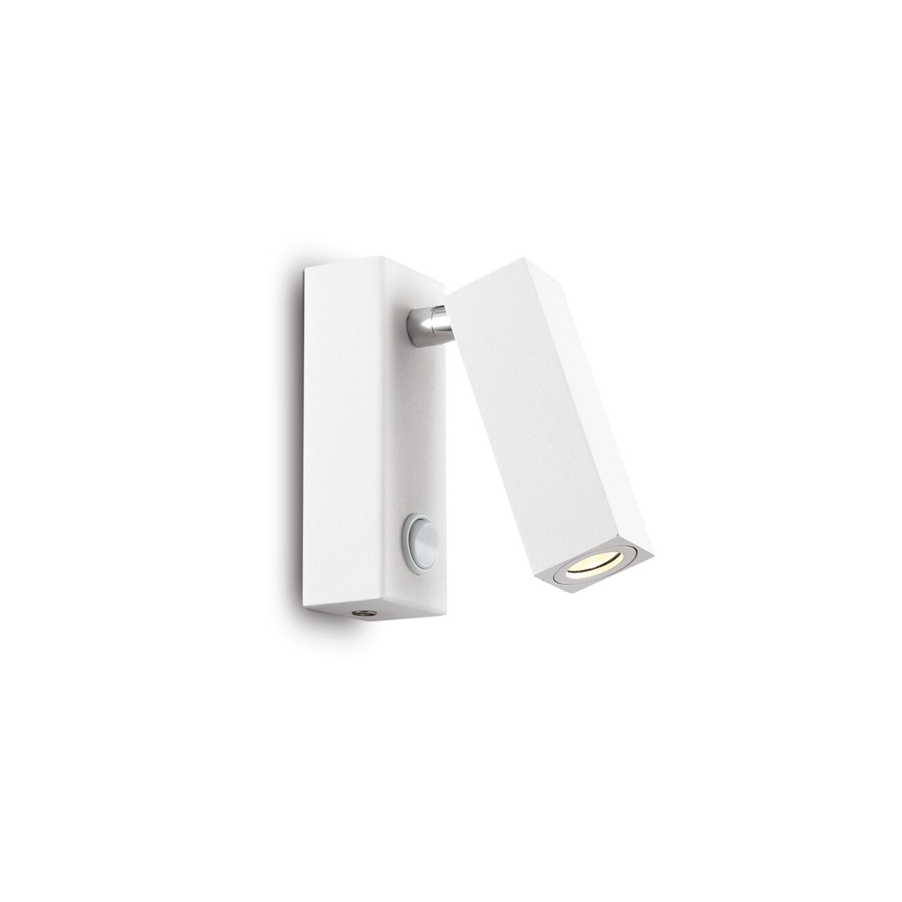 Spot modern din colectia Page avand corpul de iluminat paralelipipedic din aluminiu acoperit cu pulbere albă. Difuzorul este reglabil cu lentilă și element metalic atașat cromat. Disponibil in doua variante: cilindri sau paralelipipedic. Finisaj alb.