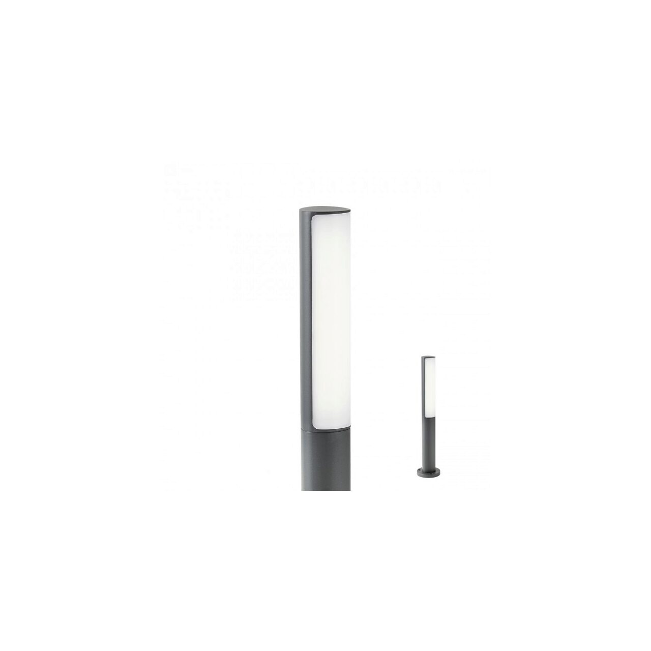 Stalp pentru exterior echipat cu LED-uri SMD cu dispersie luminoasa laterala, 9.5 W, 4000 K, 1035/820 lm. Structura din aluminiu turnat sub presiune vopsit in camp electrostatic culoare gri inchis, dispersor din policarbonat opal.