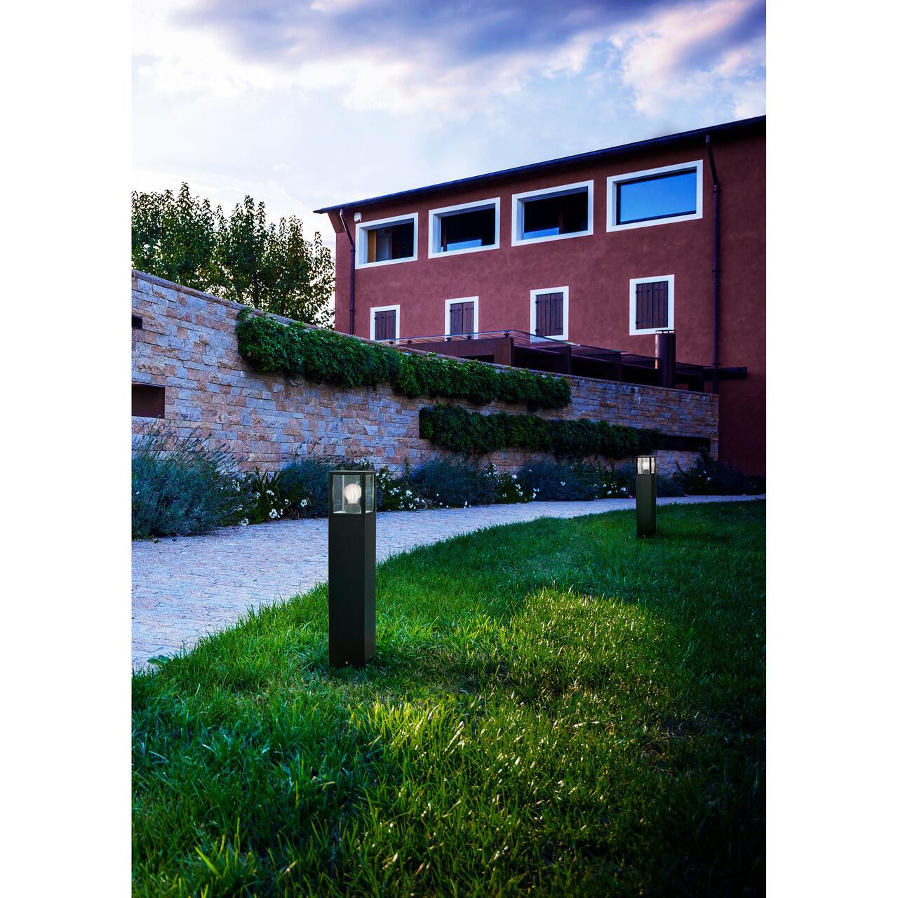 Stalp pentru exterior, IP54, E27, 15 W, inaltime 650 mm, corp din aluminiu turnat sub presiune vopsit in camp electrostatic culoare negru mat, dispersoare din sticla transparenta.
