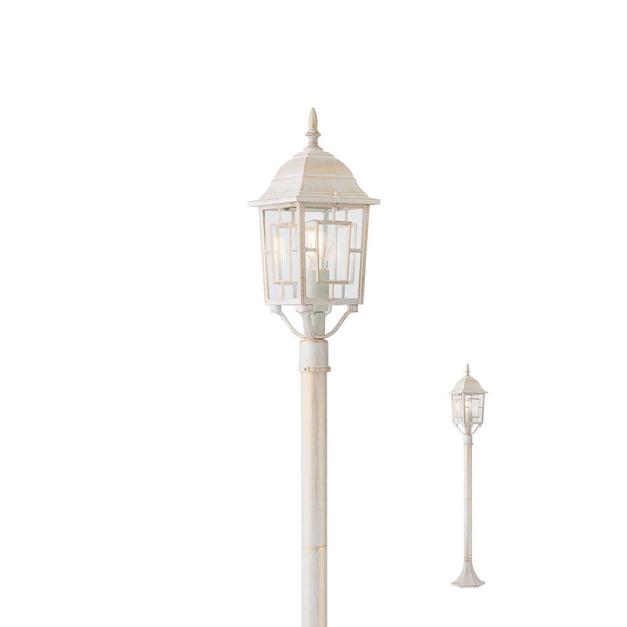 Stalp pentru exterior, structura din aluminiu turnat, finisaj alb mat cu patina aurie, dispersoare din sticla transparenta.