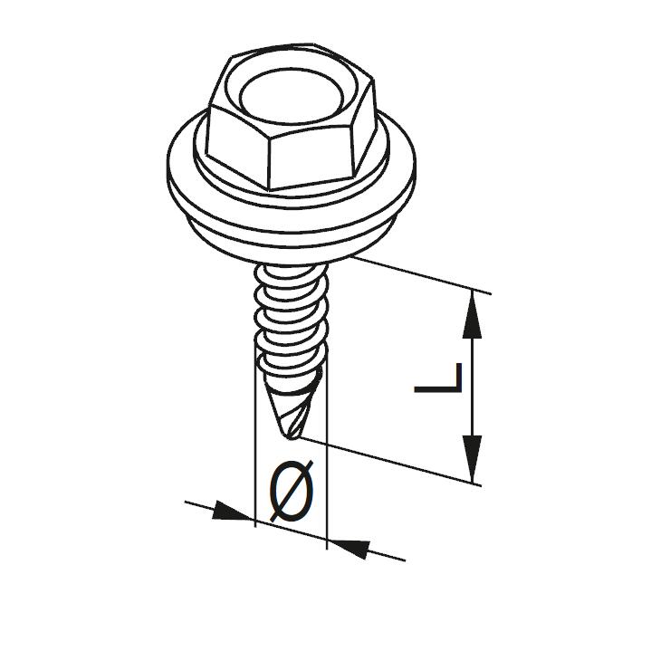 Surubul autoforant SMDP se utilizeaza la prinderea șinei de montaj pentru acoperișuri acoperite cu tablă trapezoidală.