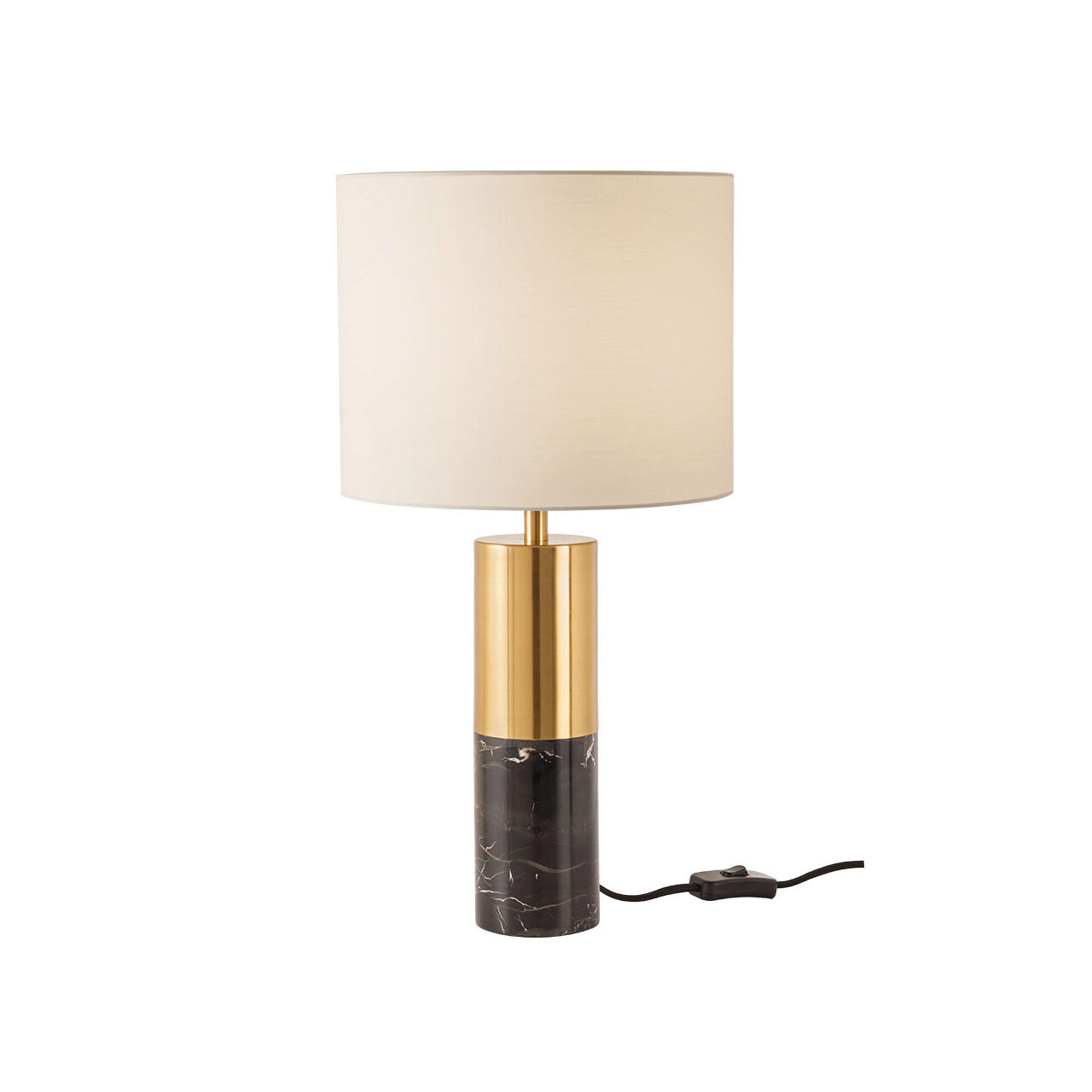 Veioza Apua este un accesoriu perfect pentru orice spațiu interior, atat ca element de decor interior, cat si functional prin crearea unor oaze de lumina si confort. Amplasata pe comoda, pe un birou elegant sau pe noptiera, va fi parte componenta a iluminatului local. Structura metalică este finisată într-un auriu lucios, cu o bază din marmură neagră pentru contrast. Abajurul este simplu, dar elegant, în forma sa cilindrică și este susținut de PVC. Veioza Apua, modernă și masivă, se va impune cu siguranță în orice spațiu, prin combinația clasica de negru și auriu care nu se va demoda niciodată. Cu o înălțime de 48 cm, veioza Apua se remarca prin designul sau care oferă un echilibru perfect între notele contemporane și cele clasice si va adăuga o notă de rafinament oricărei încăperi, incadrandu-se firesc atât în mediul casnic, cât și în cel profesional.