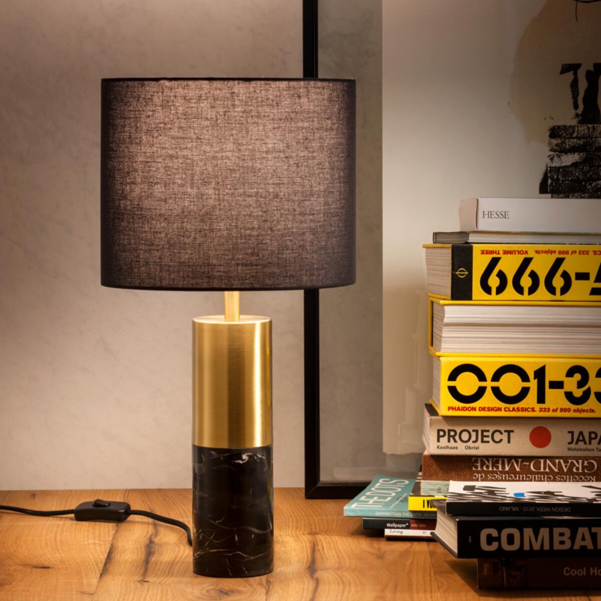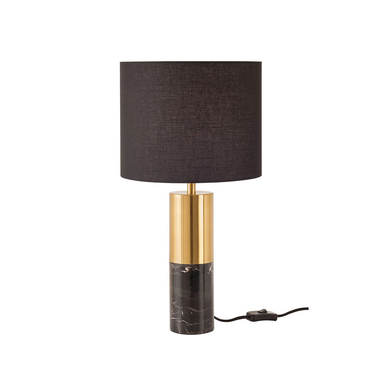 Veioza Apua moderna aurie, baza din marmura, abajur textil negru, E27/42W, IAP T1 23 06, Incanti
