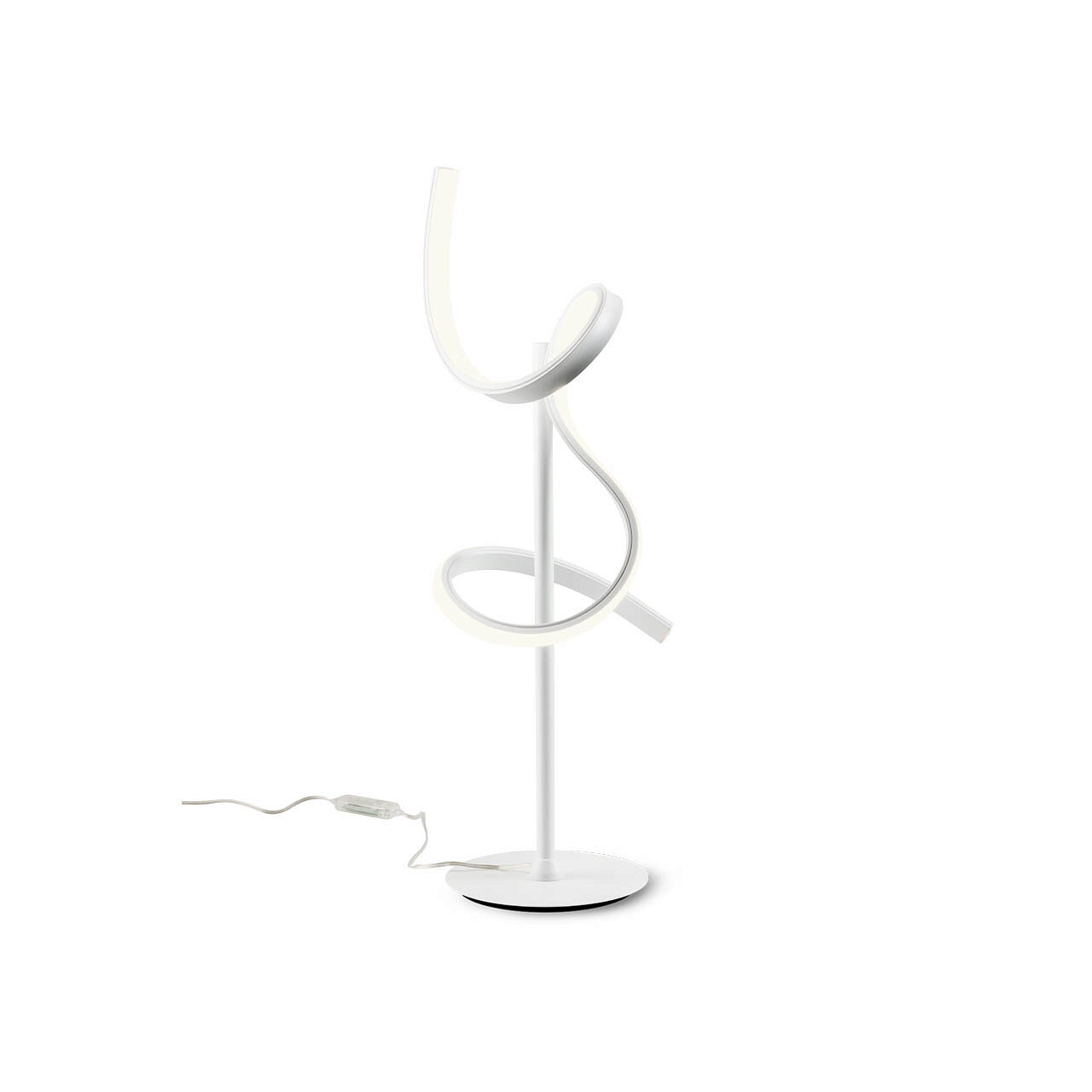 Veioză pentru interior echipată cu LED-uri SMD, structură din aluminiu și metal vopsit în câmp electrostatic alb mat, dispersor din silicon alb opal.
