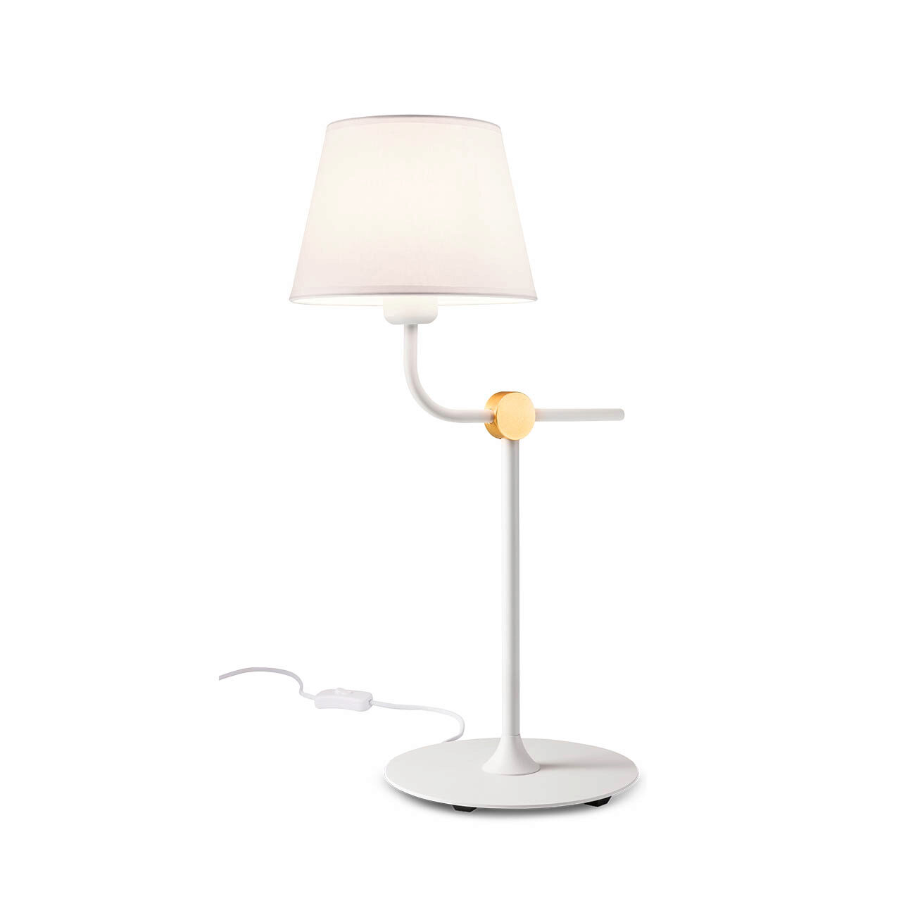 Veioză moderna alba detaliu auriu abajur textil 1xE27/42W, Morris 01-1980 Redo
