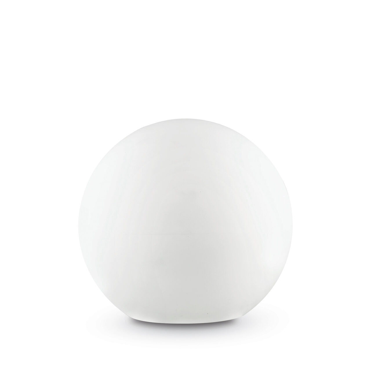 Veioza pentru exterior (IP44), sferica, din plastic alb opac (grosime de 0.5 cm), prevazuta cu cablu si stecher. Utilizand colectia de corpuri de iluminat pentru exterior Sole e usor de creat o zona de relaxare si o adevarata oaza de liniste, de care sa te bucuri in orice moment pe timp de zi si pe timp de noapte, deopotriva.